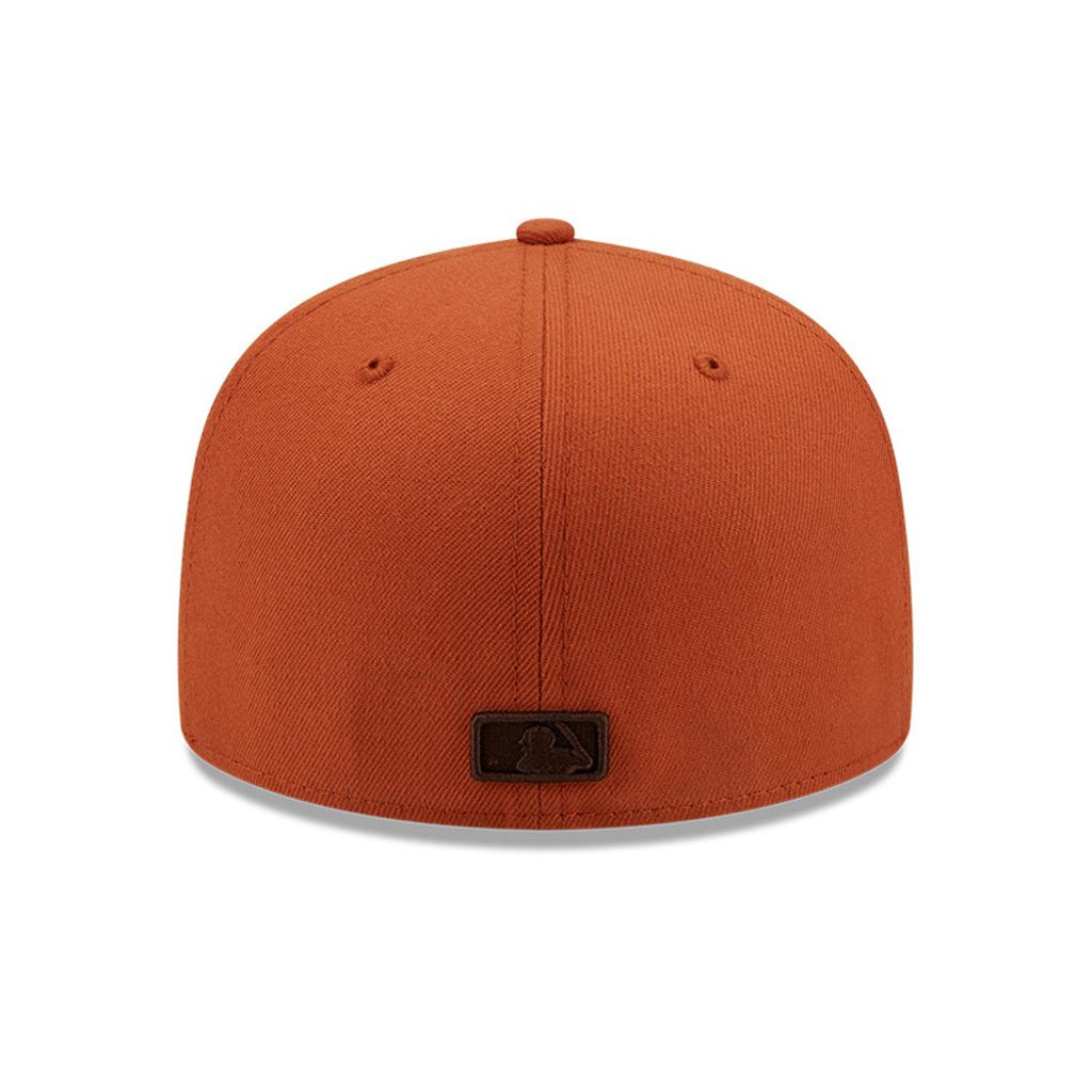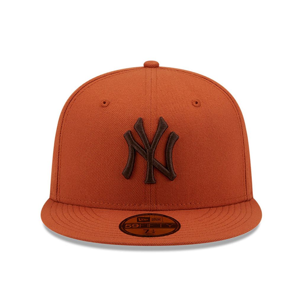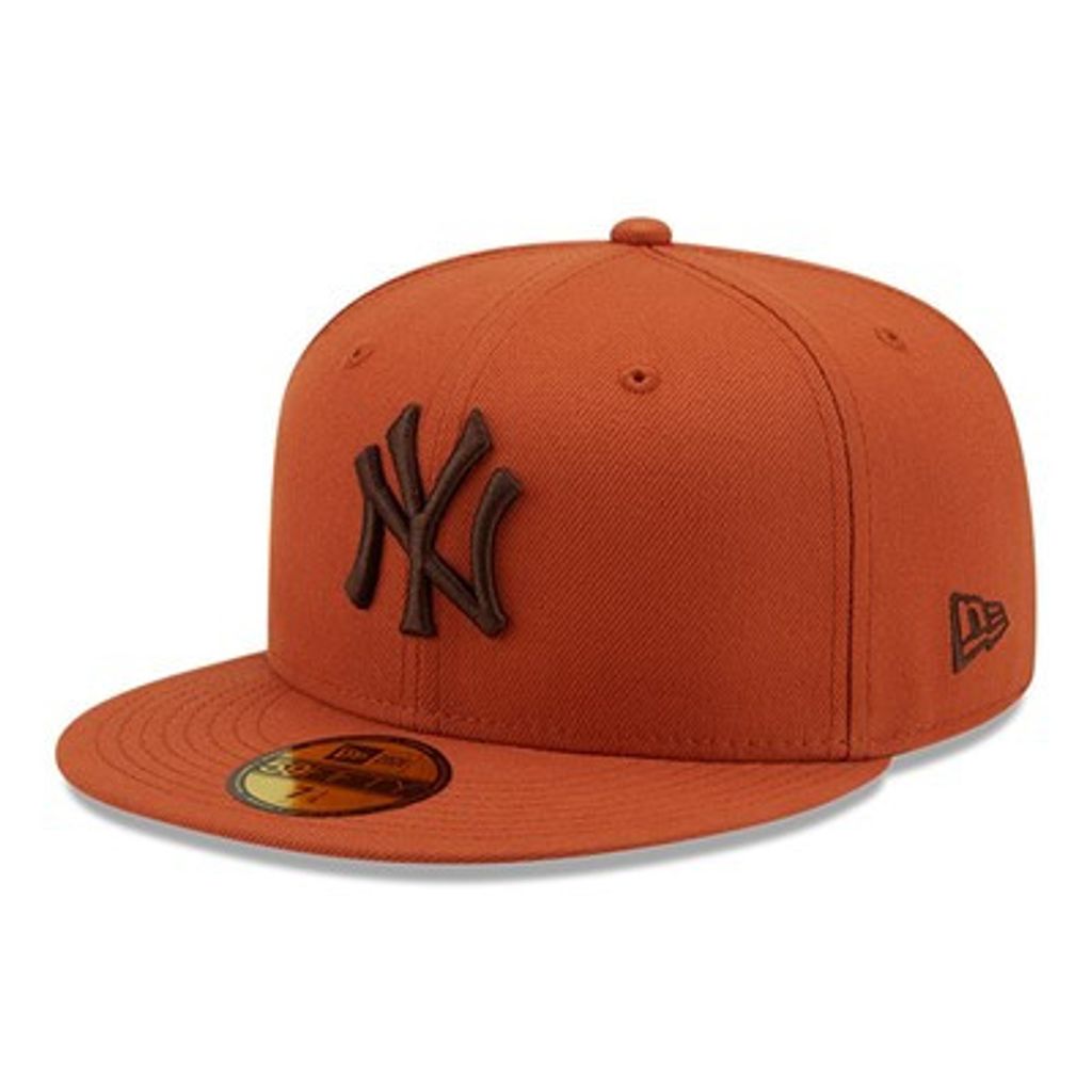 En 59fifty i jordiga toner, NY logo i brodyr fram och New Era flagga på sidan.