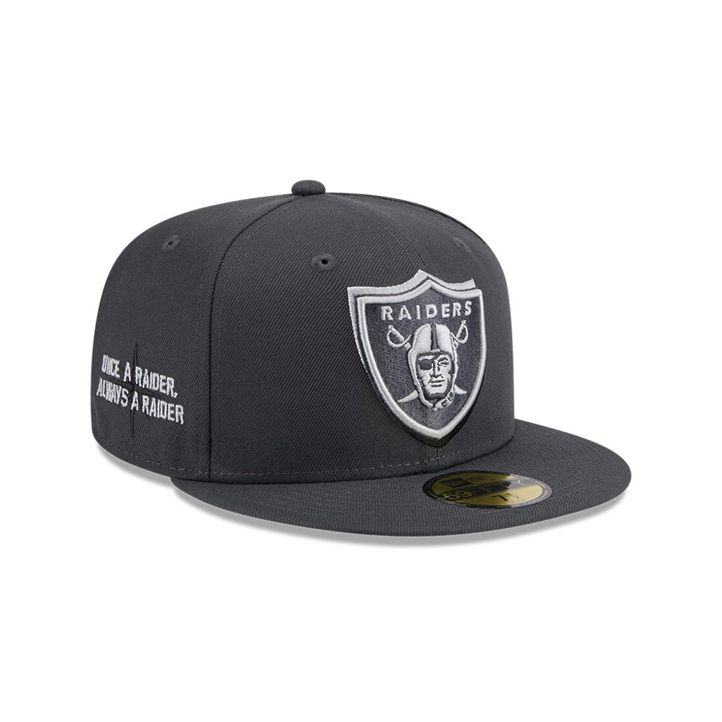 59fifty med Raiders logo i brodyr, Side Patch New Era flagga på sidan.