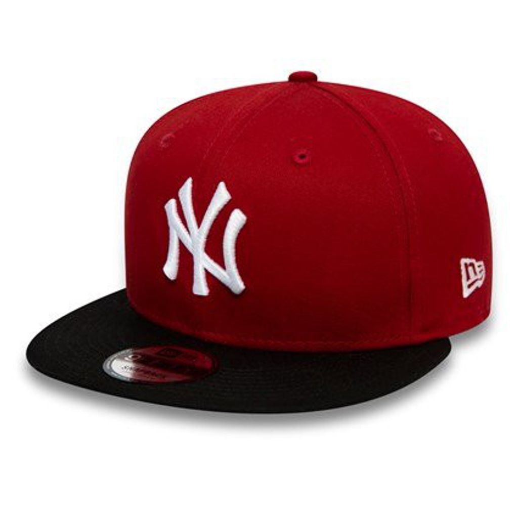 En 2-tone snapback i svart och rött, NY logo i vit brodyr.