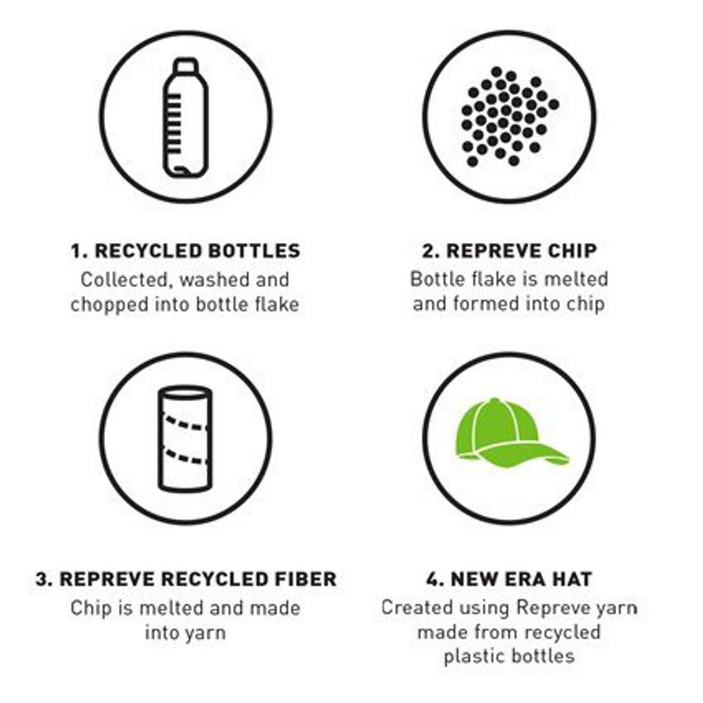 En 9forty keps tillverkad av återvunna PETflaskor. Ett lyckat samarbete mellan New Era och REPREVE.