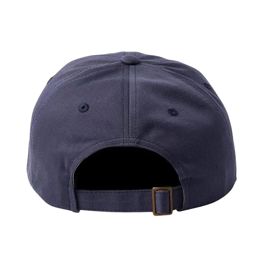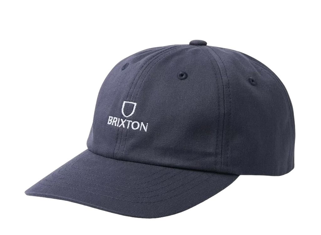 Marinblå dad cap från Brixton med tvättad look, vit brodyr. Reglerbart spänne baktill.