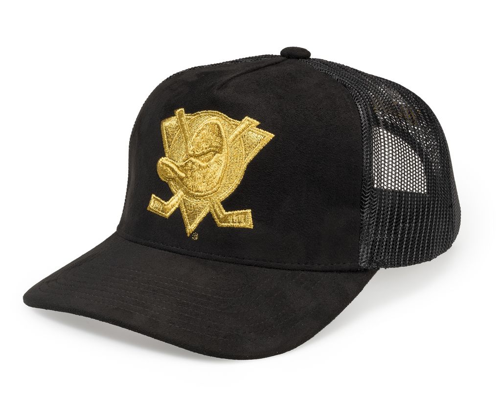 Anaheim Ducks NHL Black/Gold Trucker- HHSSINTL1339-ADUBLCK- Mitchell & Ness. Keps i mockaimitation med guld brodyr. Reglerbart spänne baktill.