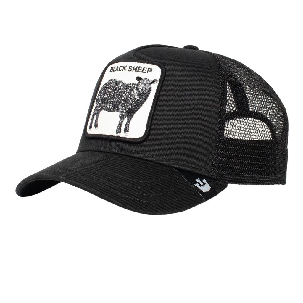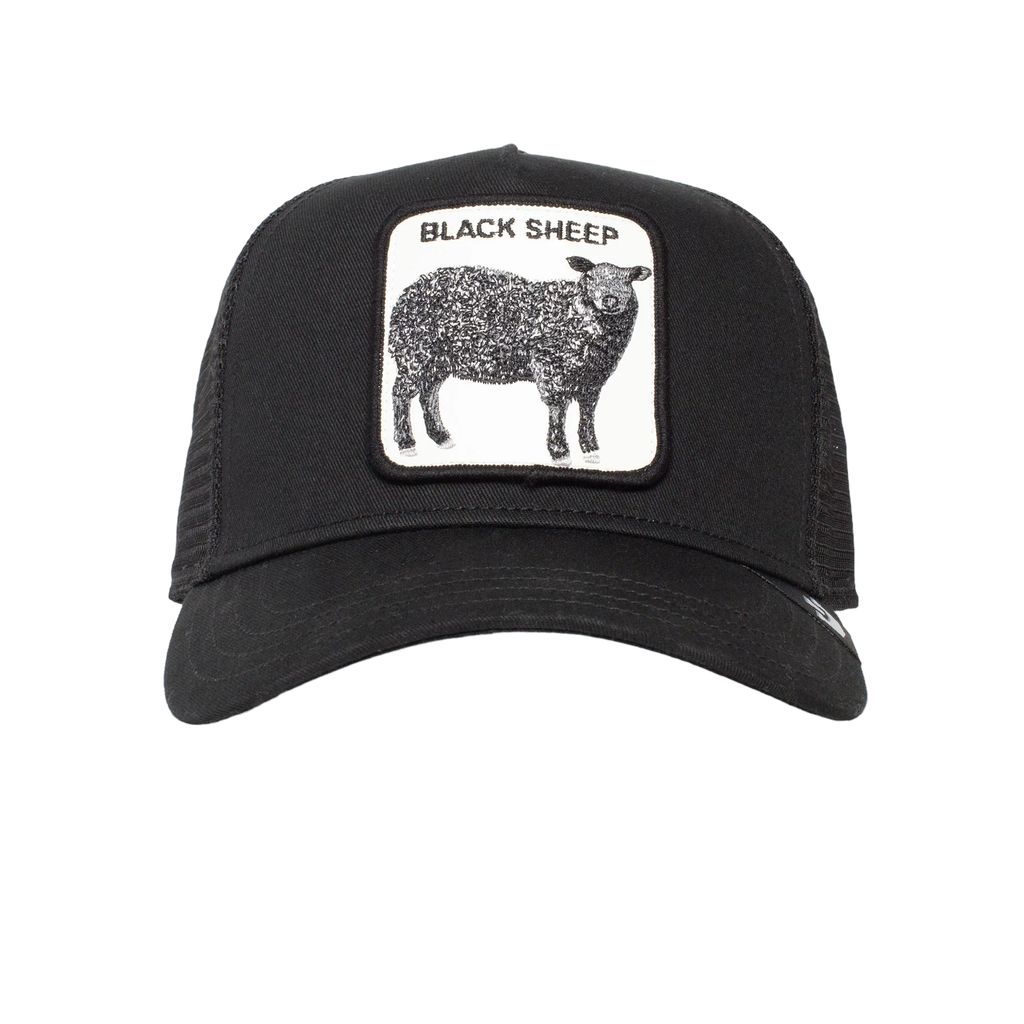 Svart trucker från Goorin Bros, patch på framsidan i skinnimitation "Black sheep".