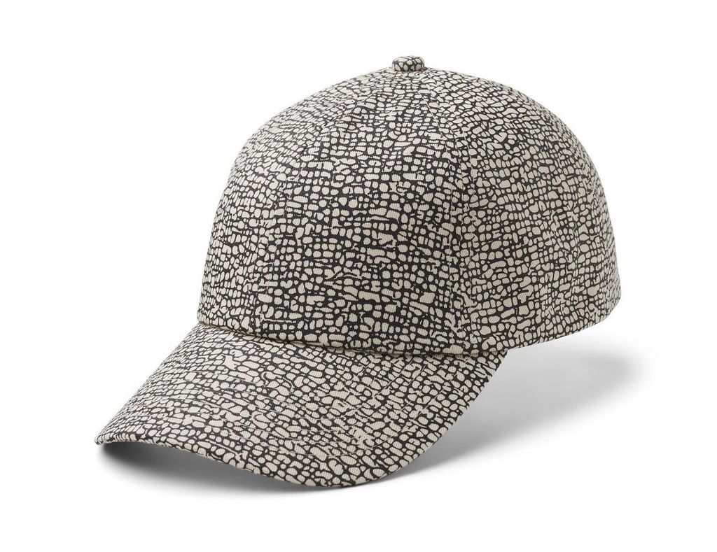 En mönstrad Dad Cap i svart och offwhite i 100% organisk bomull. Reglerbart spänne med kardborreband.