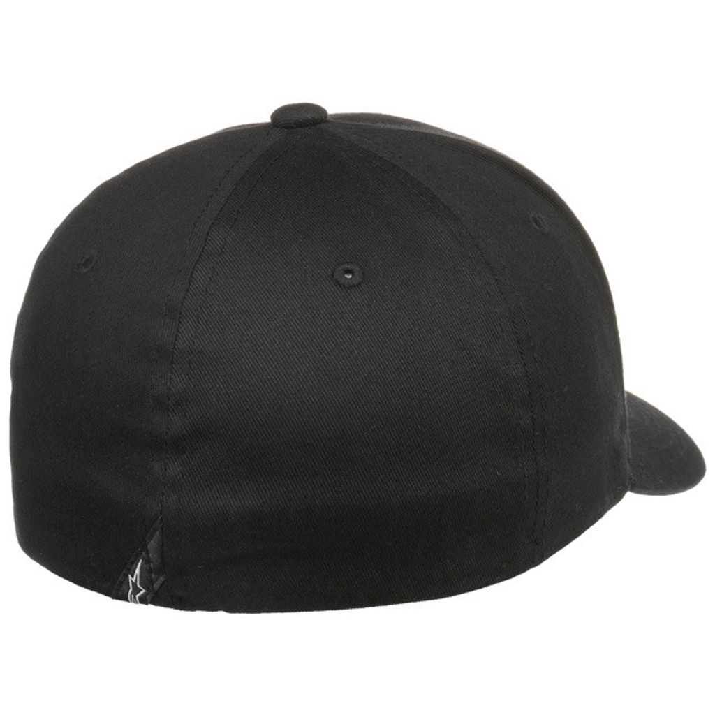 En svart flexfit keps från Alpinestars, röd Alpinestars logo i brodyr fram.