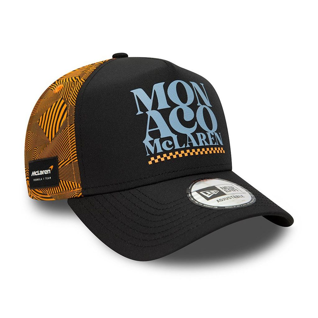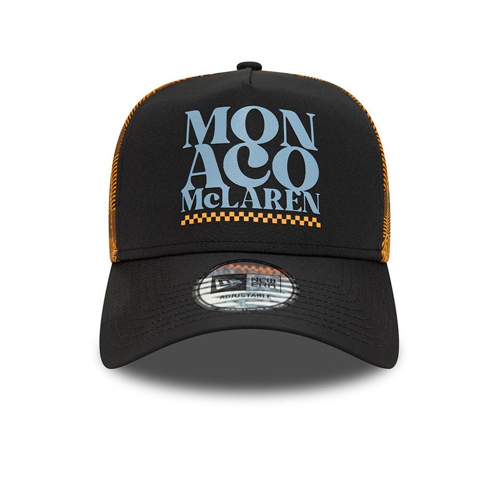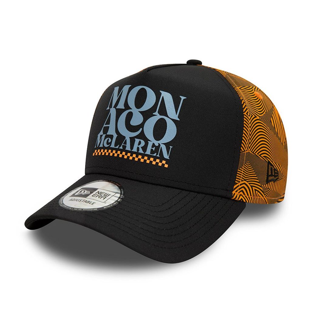 En E-Frame trucker från New Era med Monaco/McLaren logo fram och New Era flagga på sidan.