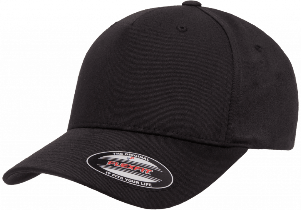 Svart 5-panel flexfit keps med elastisk passform och hel baksida utan spännen. En stilren och blank modell för dig som vill ha en helt ren look.