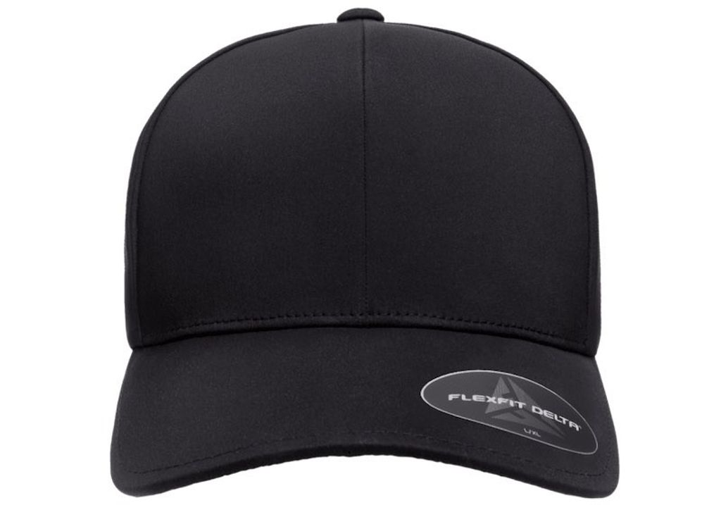 Svart performance-keps i lätt och vattenavvisande material med Flexfit Delta-konstruktion. Sömlös design och stretch-fit passform ger hög komfort vid träning och vardag.