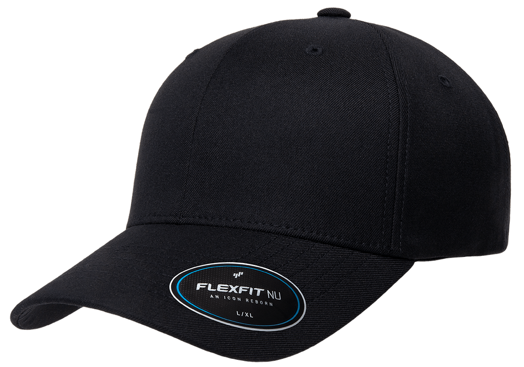 En svart keps från Flexfit. Denna modell är även svart undertill.