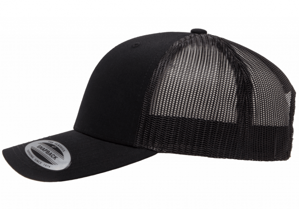 Svart trucker från Yupoong, utan logos för dig som vill ha en clean keps. Reglerbart spänne baktill.