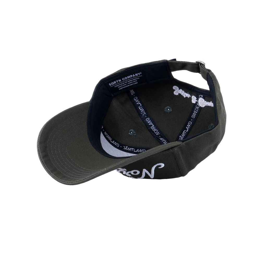 Grön keps med lätt böjd skärm från Sqrtn. Reglerbart spänne baktill.