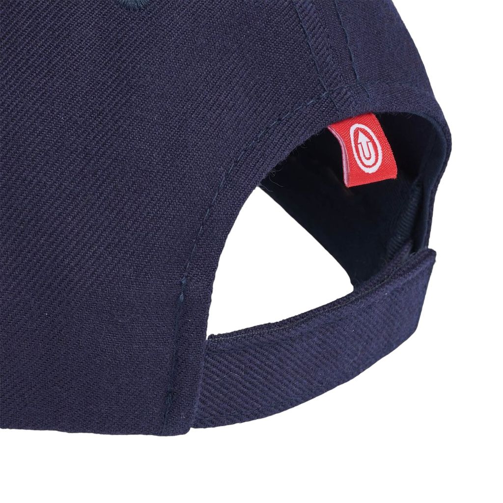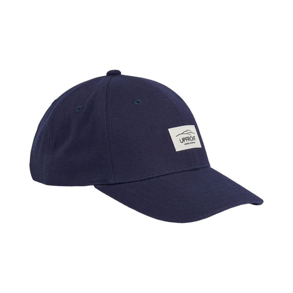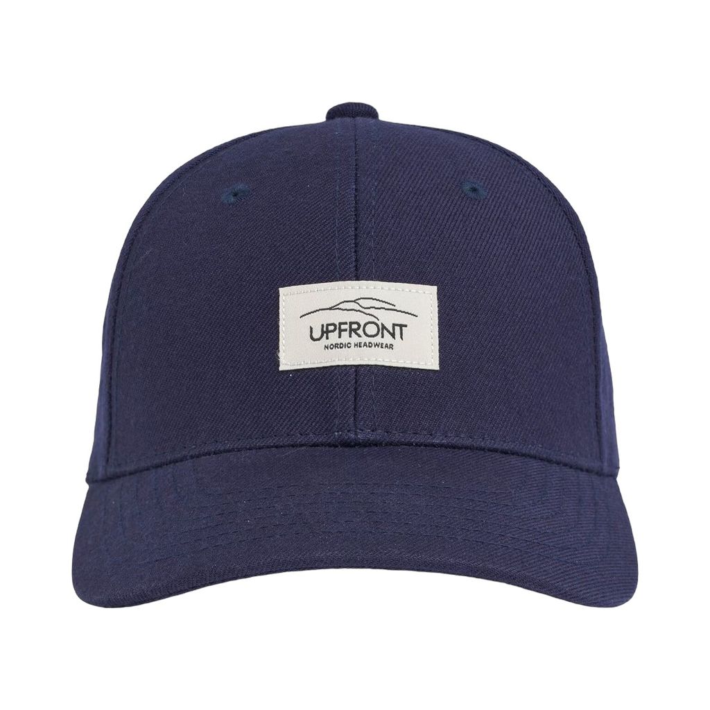 En marinblå keps av hög kvalitet i ullblandning från Upfront. Reglerbart spänne baktill.
