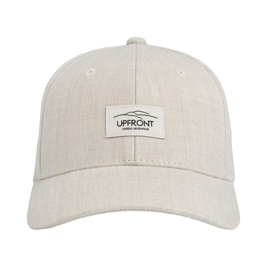 En beige keps av hög kvalitet i ullblandning från Upfront. Reglerbart spänne baktill.