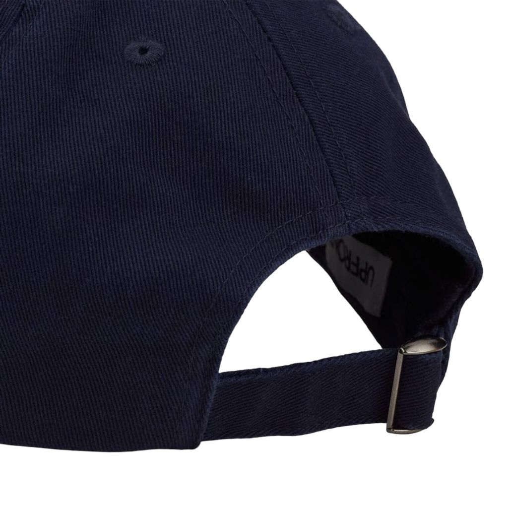 Navyfärgad Dad Cap i 100% organisk bomull. Kepsen är mjuk och följsam, ostrukturerad krona och reglerbart spänne bak.