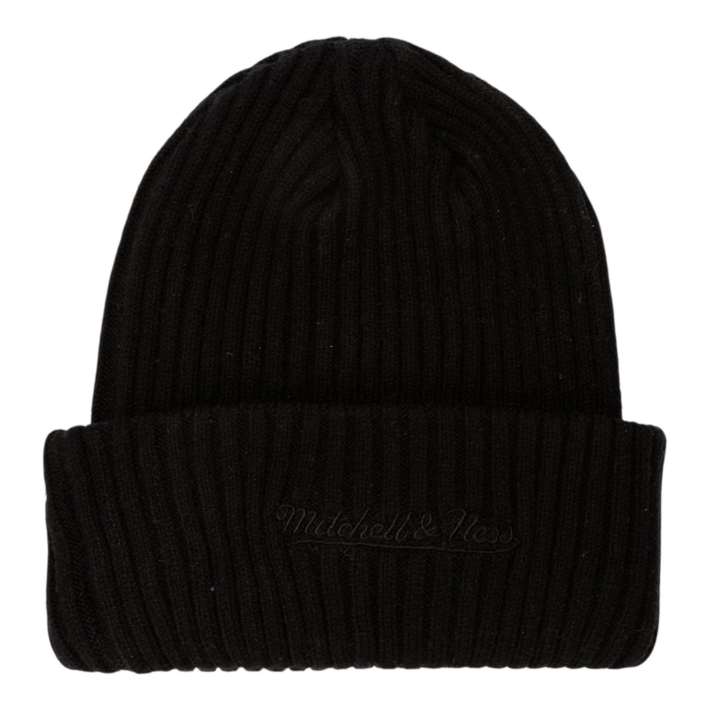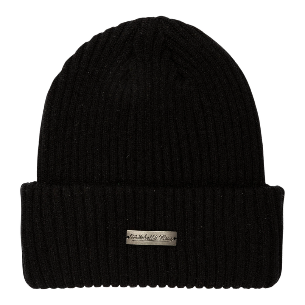 Svart ribbstickad mössa från Mitchell & Ness med uppvikt kant och diskret metallbadge framtill. Klassisk passform som sitter bekvämt hela dagen.