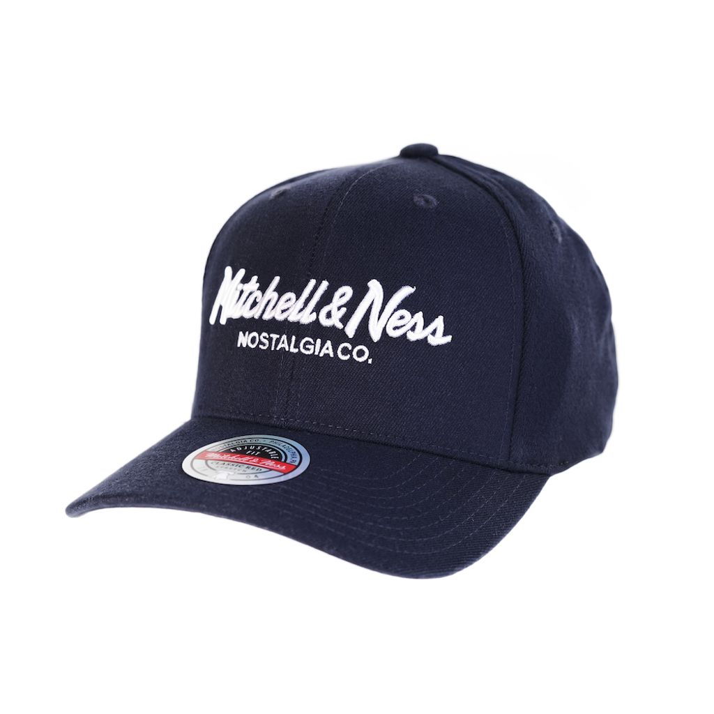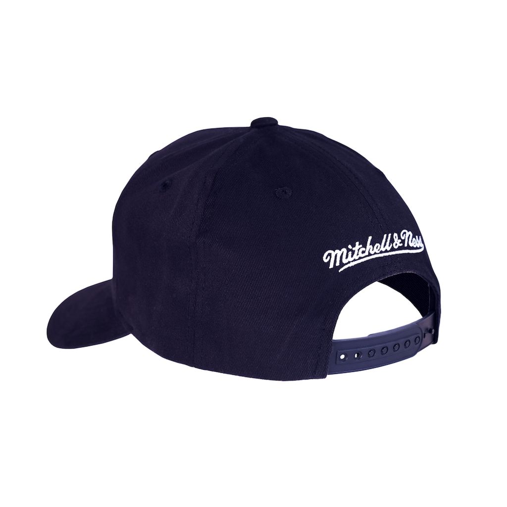 Navy keps från Mitchell & Ness i Red Classic-modell. Snapback-keps med broderad Pinscript-logotyp i vitt och reglerbar passform.