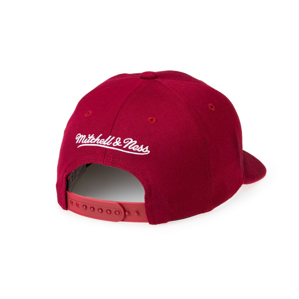 Stretch snapback från Mitchell & Ness keps med vit Pinscript-brodyr framtill, lätt stretch och justerbart spänne för bekväm passform i burgundy.