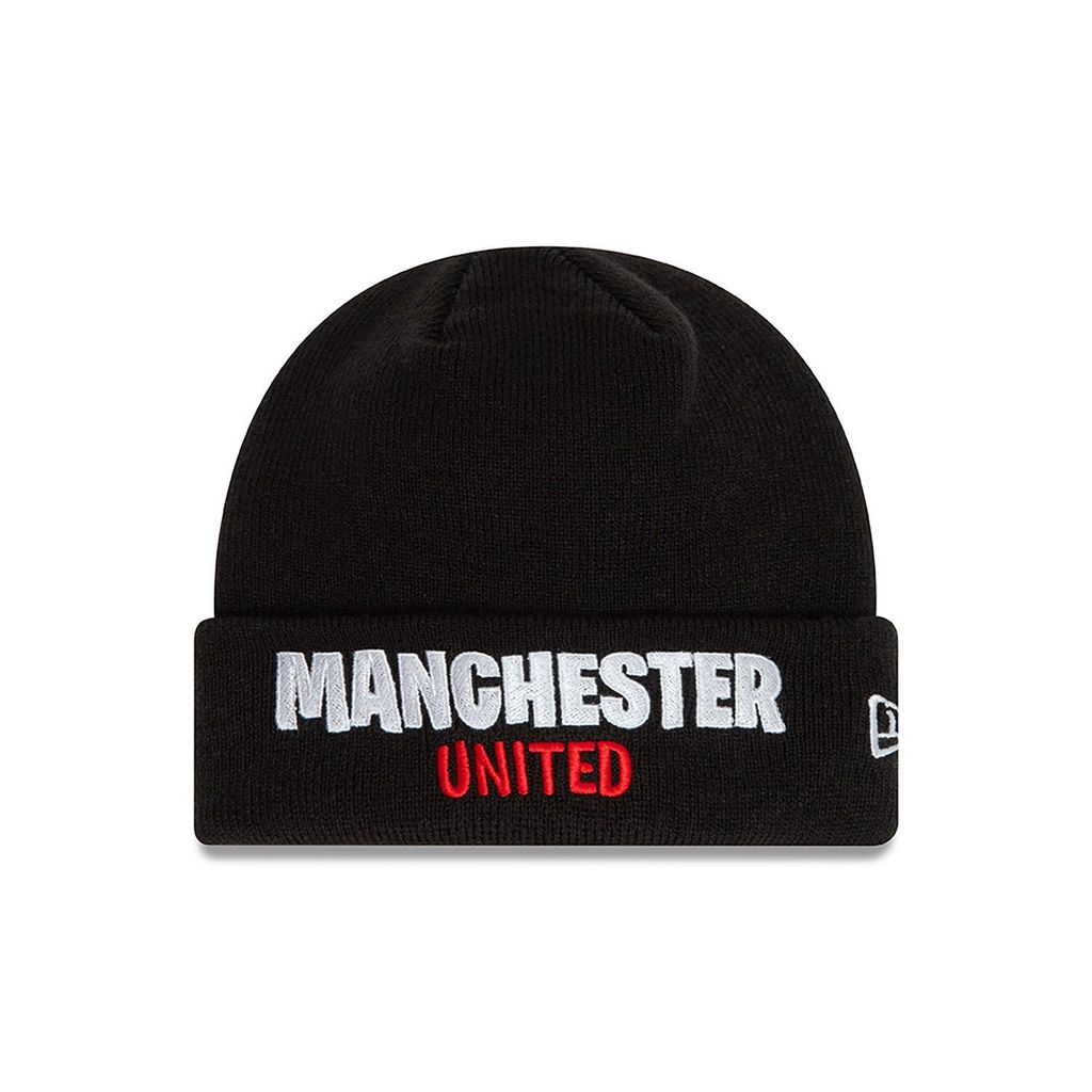 Stickad youth-mössa från New Era i black med Manchester United-text framtill.