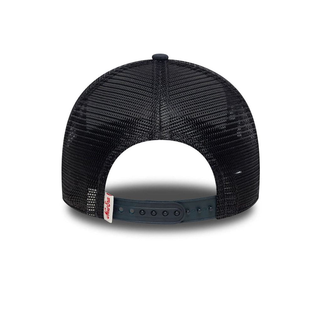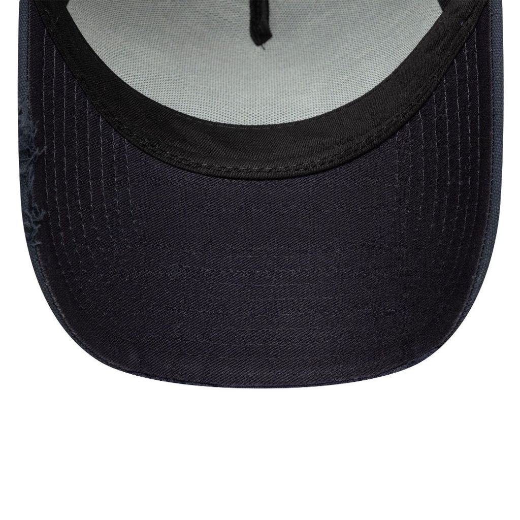 Trucker keps från New Era med mörkblå canvasfront och mörkblå mesh baktill. De slitna detaljerna ger modellen ett avslappnat och lite råare uttryck.