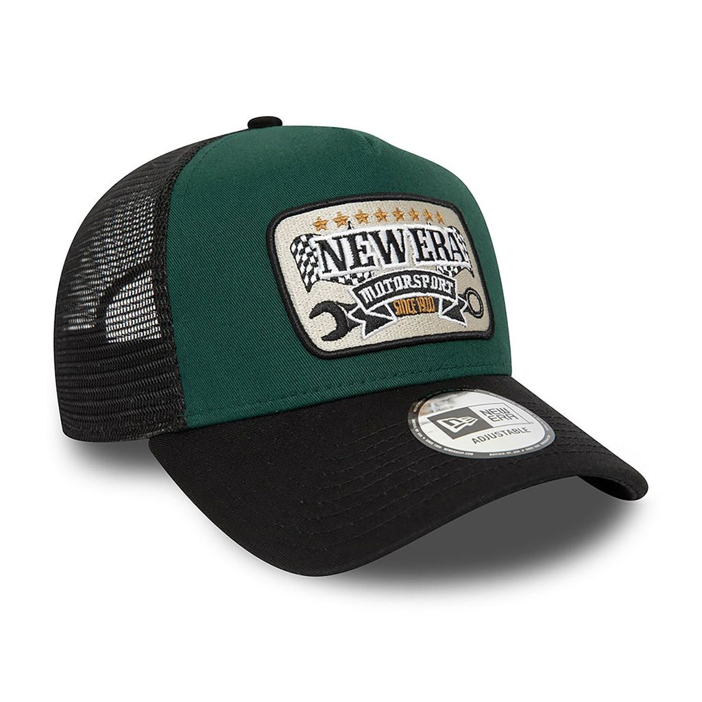 Grön och svart trucker från New Era med patch. Reglerbart spänne baktill.