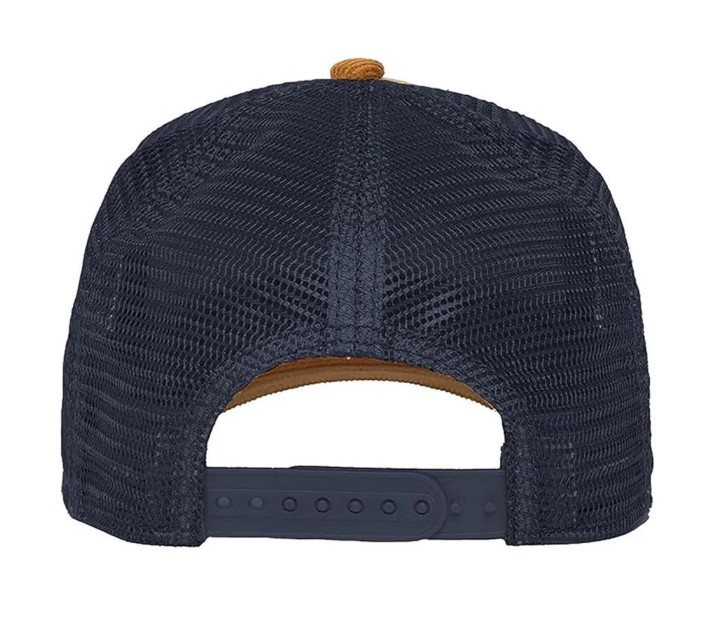 Brun/ navy trucker från Goorin Bros. Fronten är i manchestertyg, patch i skinnimitation. Reglerbart spänne baktill.