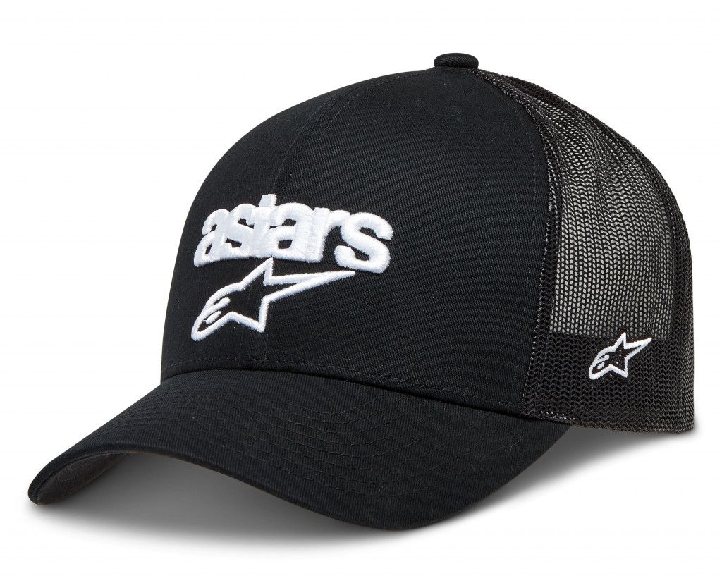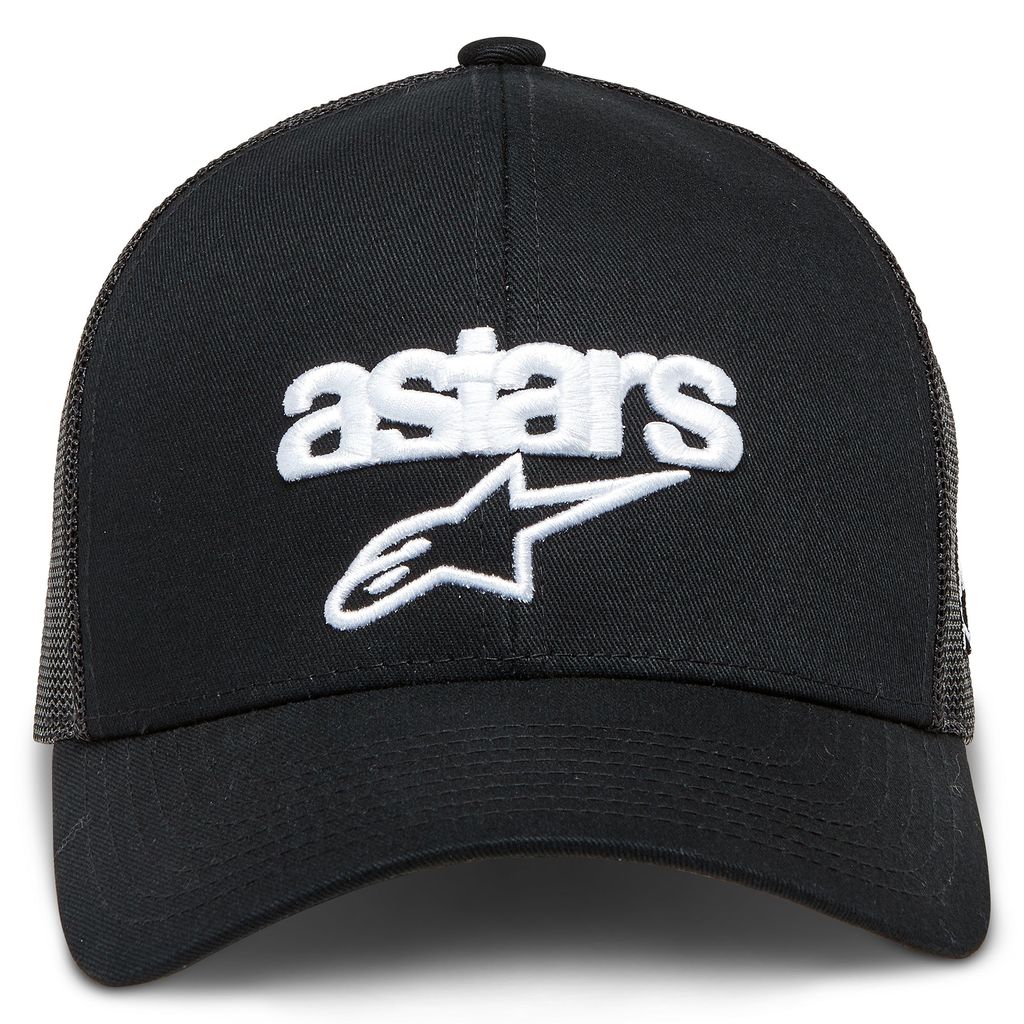 En svart truckerkeps med vit logo ''ASTARS'' på framsidan av kepsen.