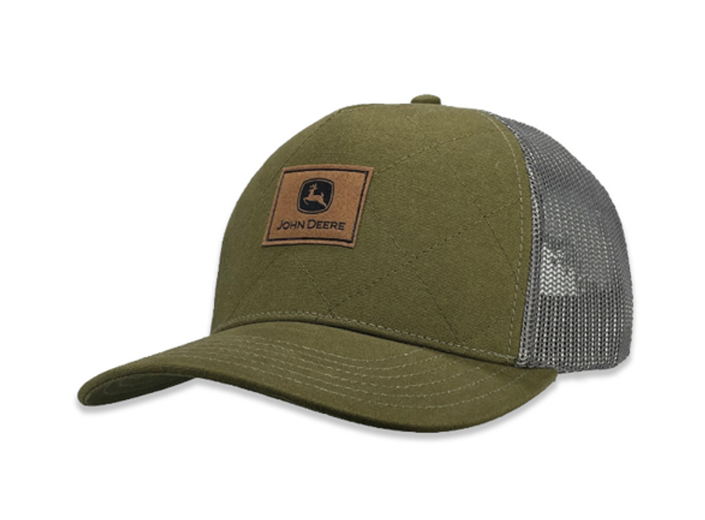 John Deere Quilted Foam Canvas 5 Panel Trucker Cap Grey/Olive LP83273