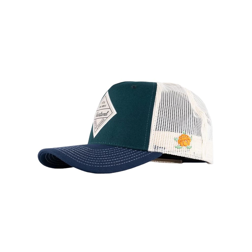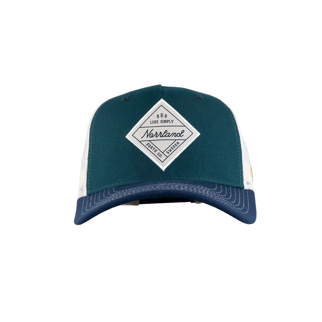 Blå och grön trucker keps från Sqrtn med patch "Simply".