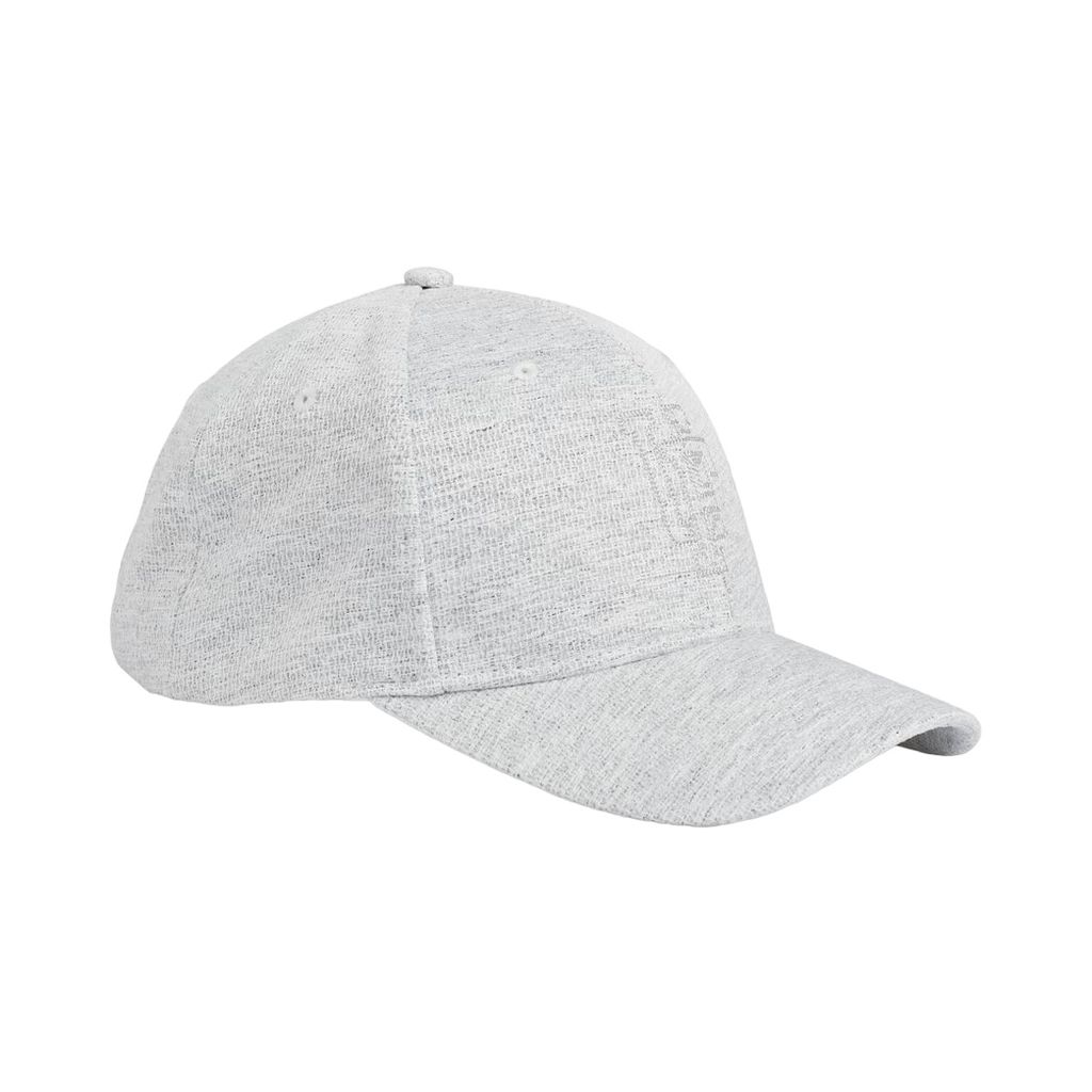 Gråmelerad keps i återvunnet material med Upfront logo i brodyr. Reglerbart spänne baktill.