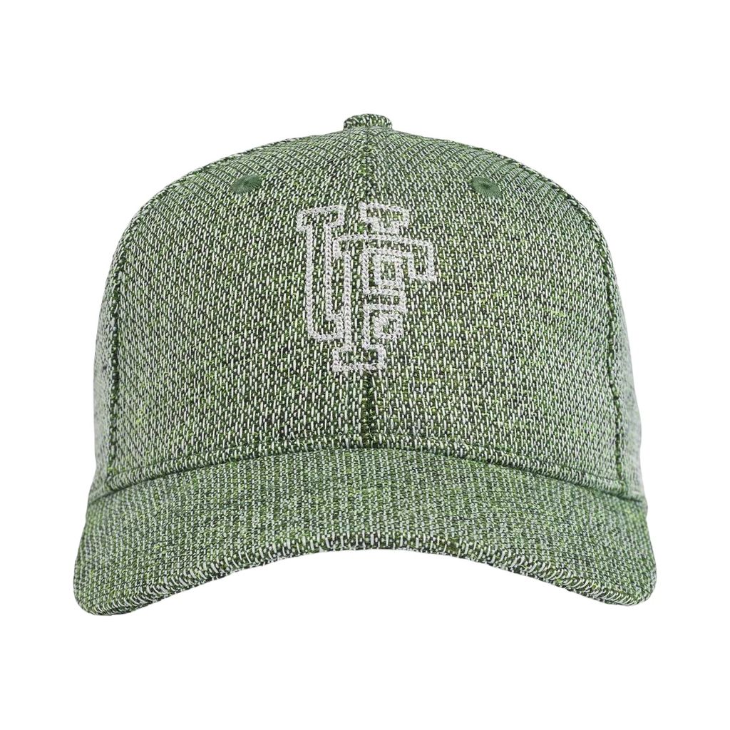 Grönmelerad keps i återvunnet material med Upfront logo i brodyr. Reglerbart spänne baktill.