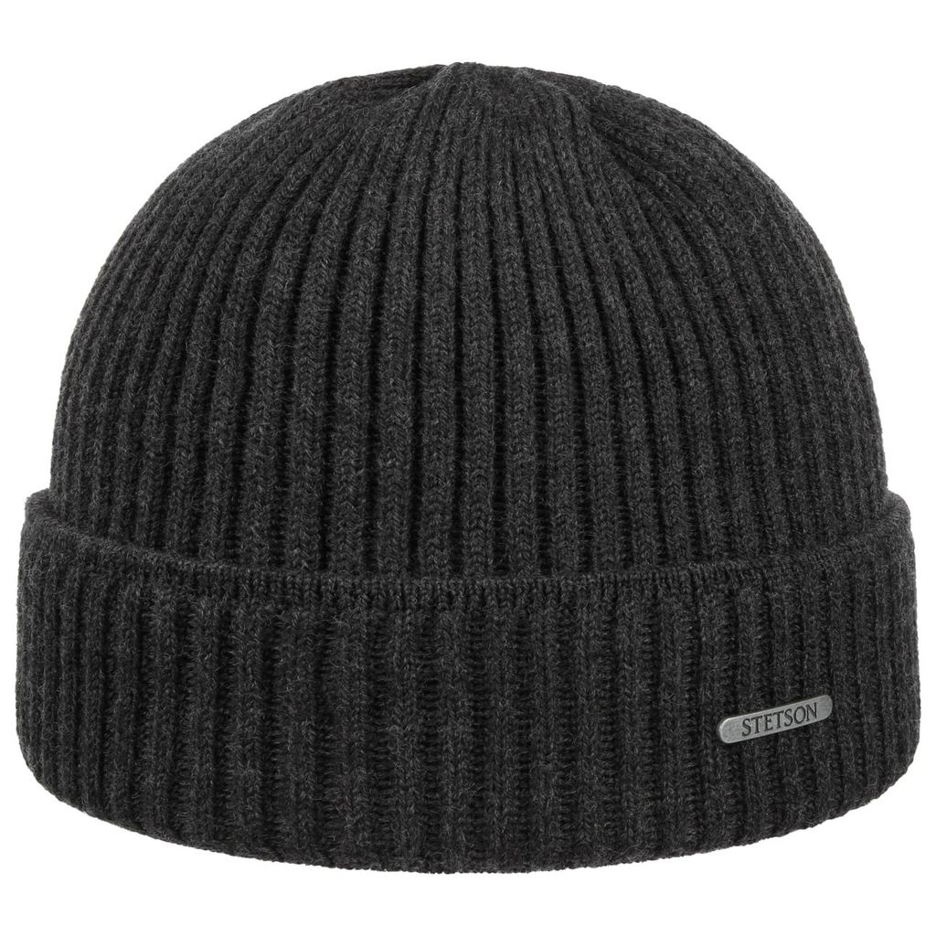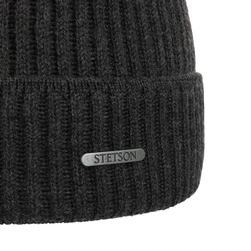 Gråmelerad beanie i mjuk merinoull från Stetson som andas, reglerar värme och ger hög komfort. Ribbstickad design med bred kant för tidlös och modern stil.