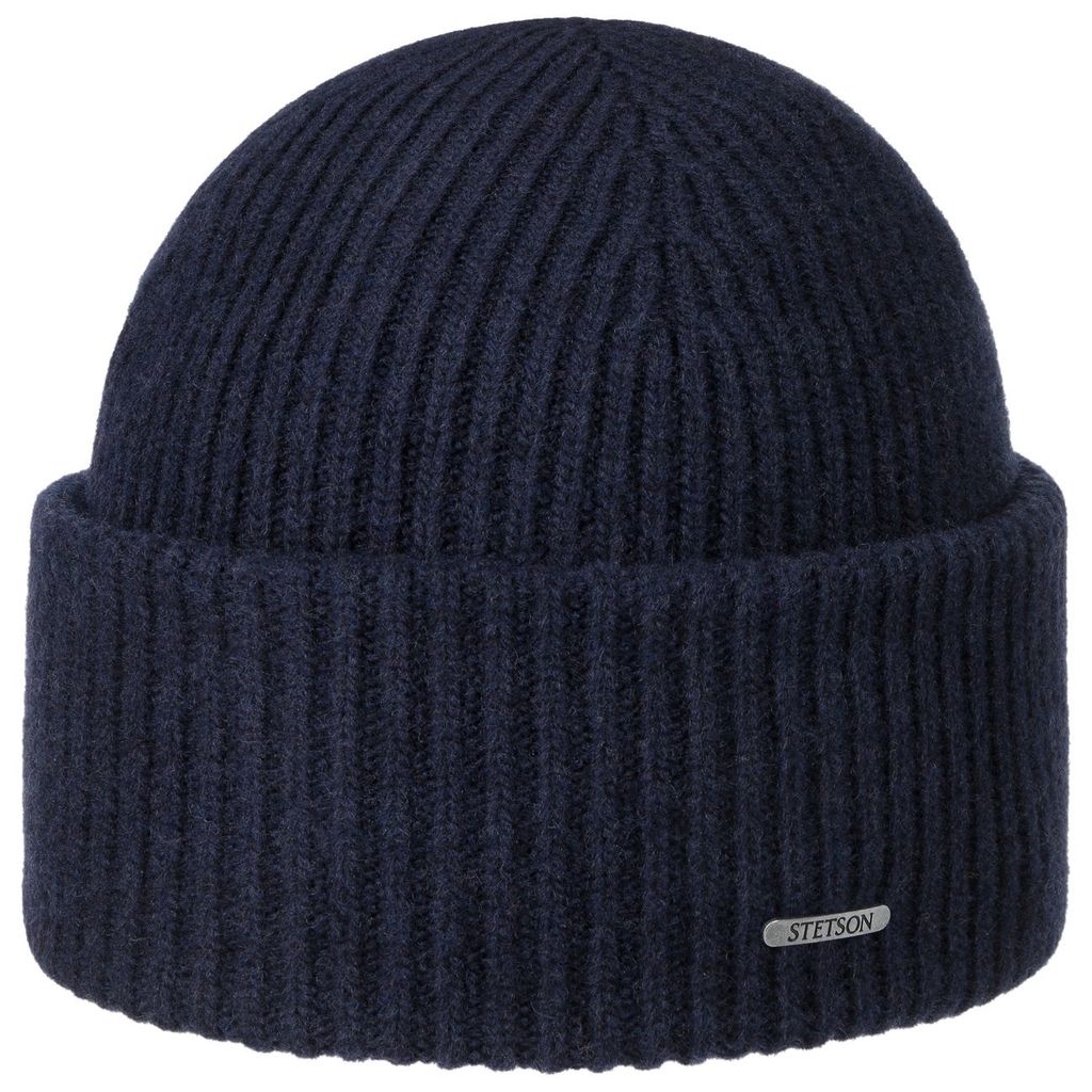 Exklusiv marinblå beanie i 100 % merinoull från Stetson. Tillverkad i Italien med tidlös design och premiumkvalitet.