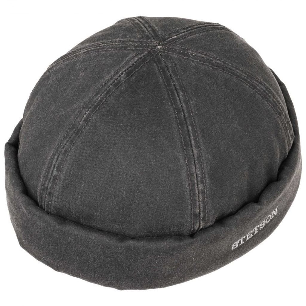 En svart Stetson docker-mössa i slitstark bomull och polyester. Vattentålig, lätt och formstabil modell med kort uppvikt design för vardag och utomhusbruk.