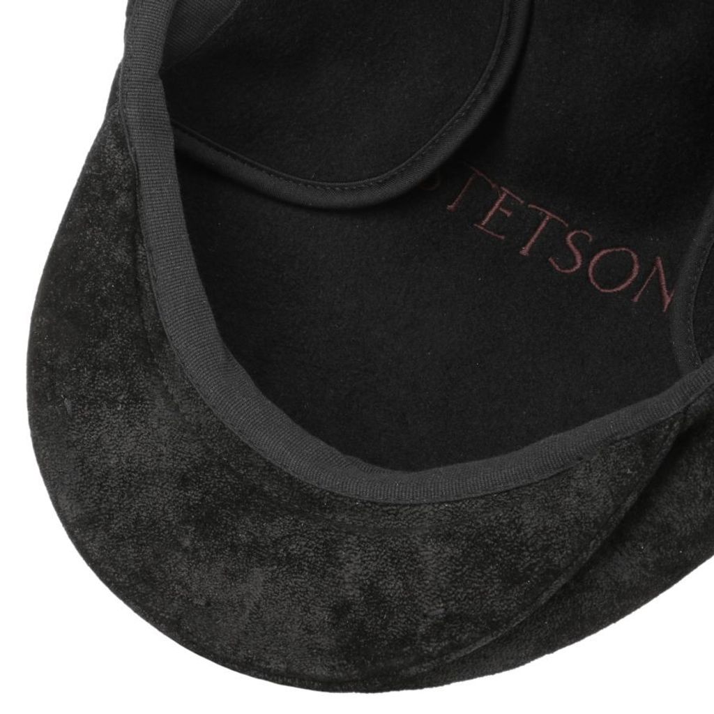 Svart Kent-modell från Stetson i mjukt läder med värmande foder och nedfällbara öronlappar för extra skydd.