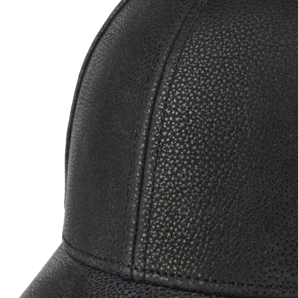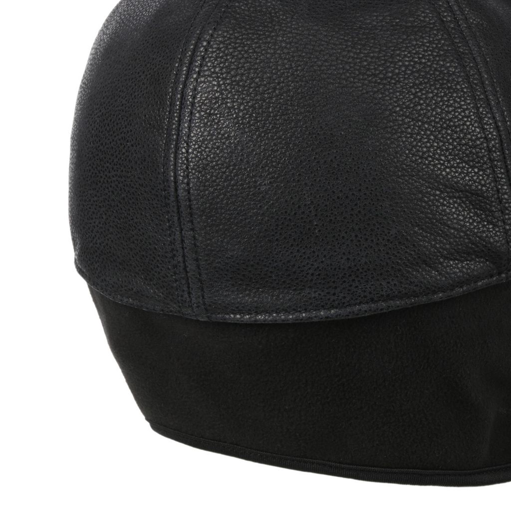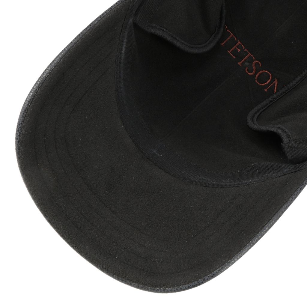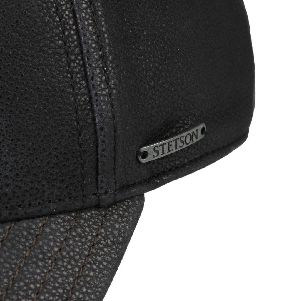 Svart läderkeps från Stetson med låg profil, mjuk känsla och diskreta nedfällbara öronlappar.