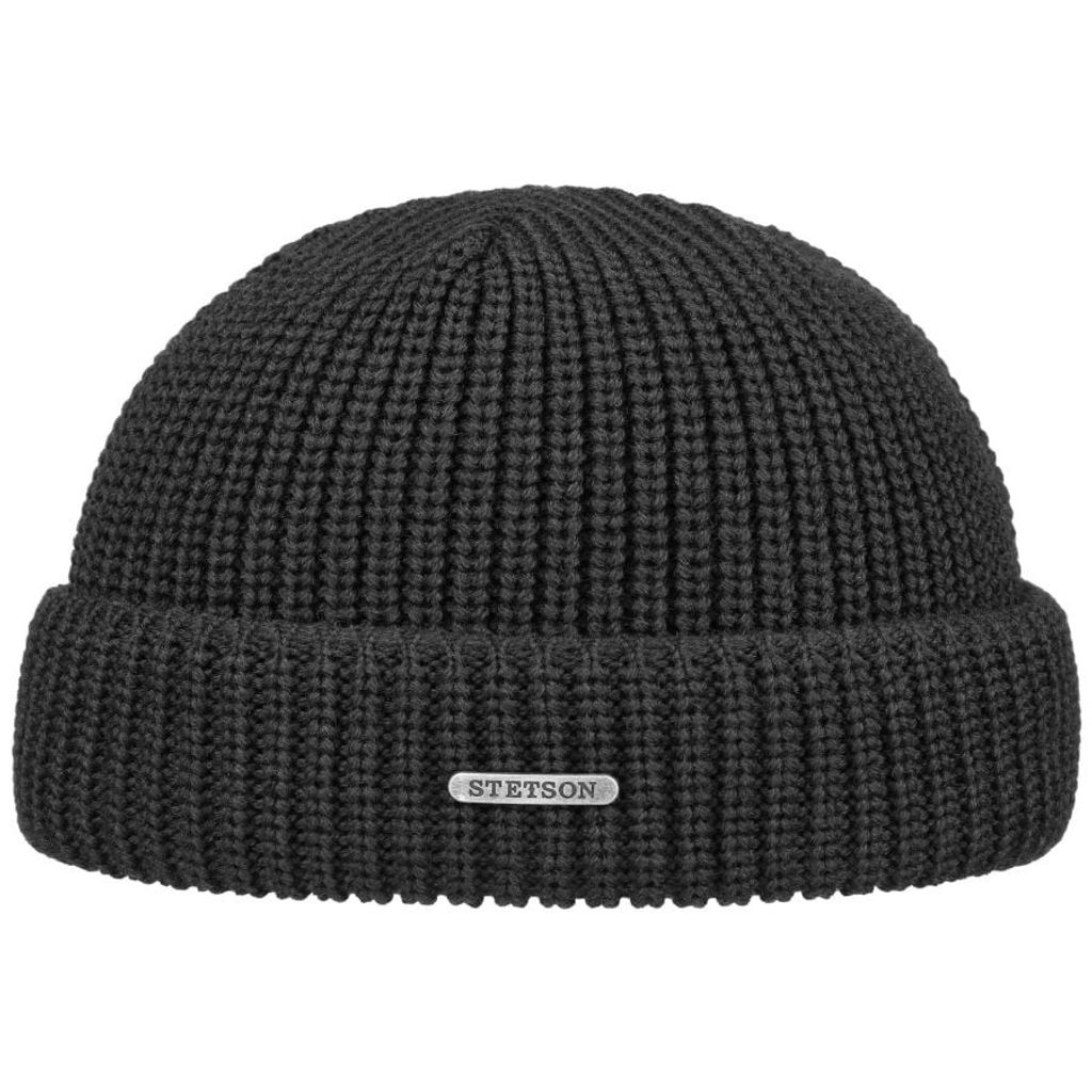 En svart ribbstickad docker-beanie i 100% ull från Stetson. Modellen har en kortare passform med uppvikt kant – inspirerad av klassiska hamnarbetarmössor – vilket ger en varm, tålig och stilren premiumlook.