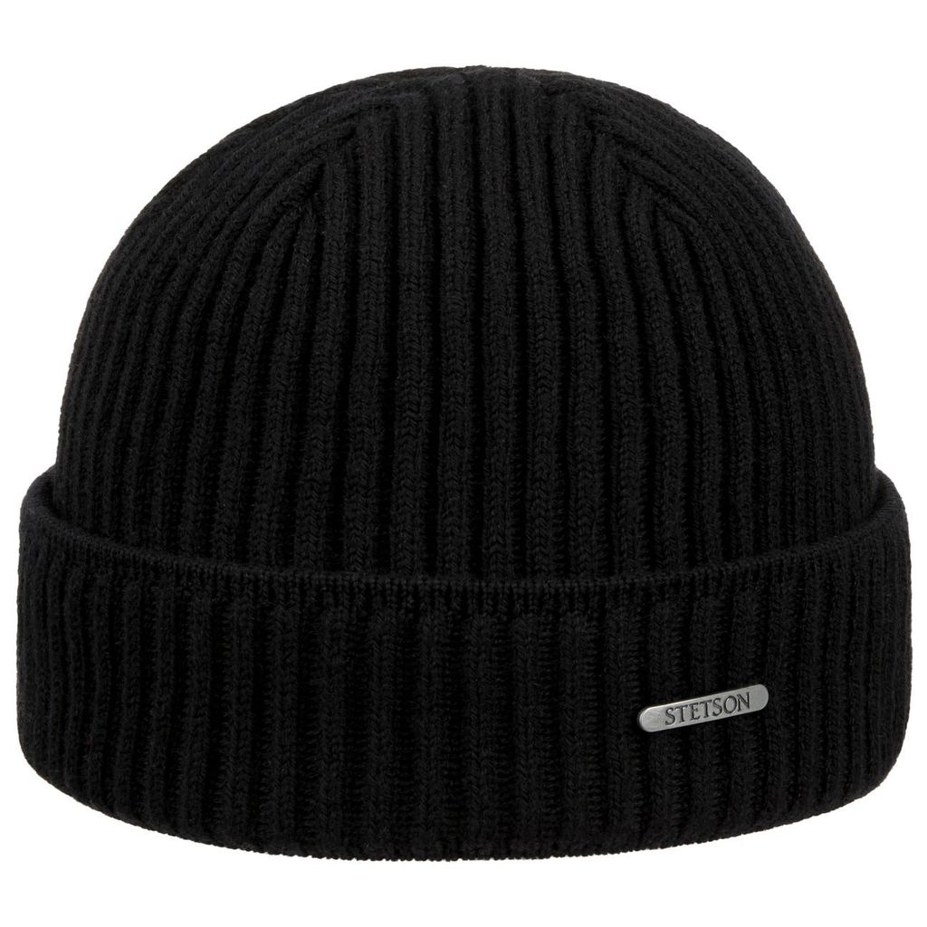 Svart beanie i mjuk merinoull från Stetson. Tillverkad i Italien med bred uppvikt kant som ger en modern och tidlös look. Reglerar temperatur, motverkar lukt och statisk elektricitet.