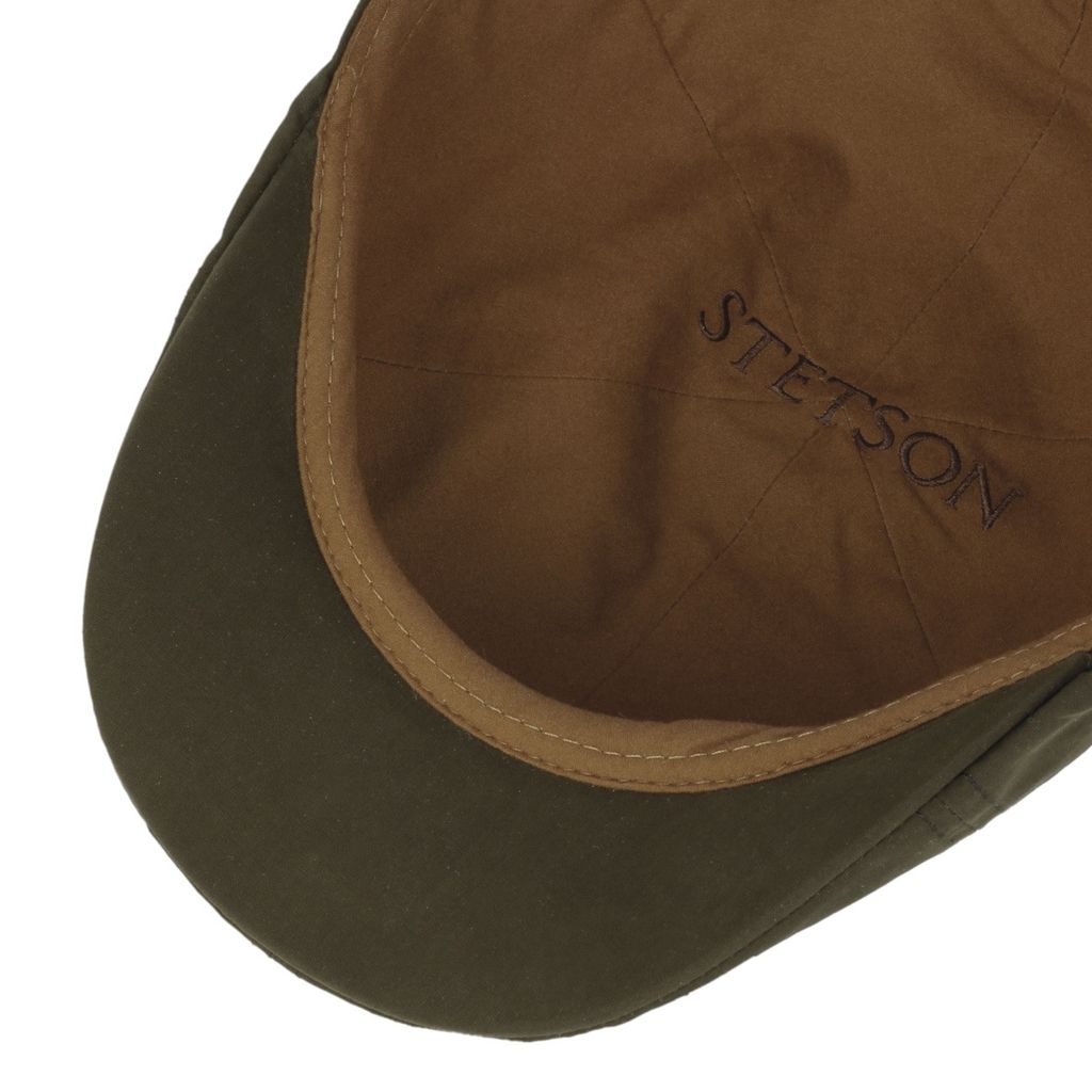 Stetson Texas i olivgrön vaxad bomull med vattenavvisande yta och låg profil.
