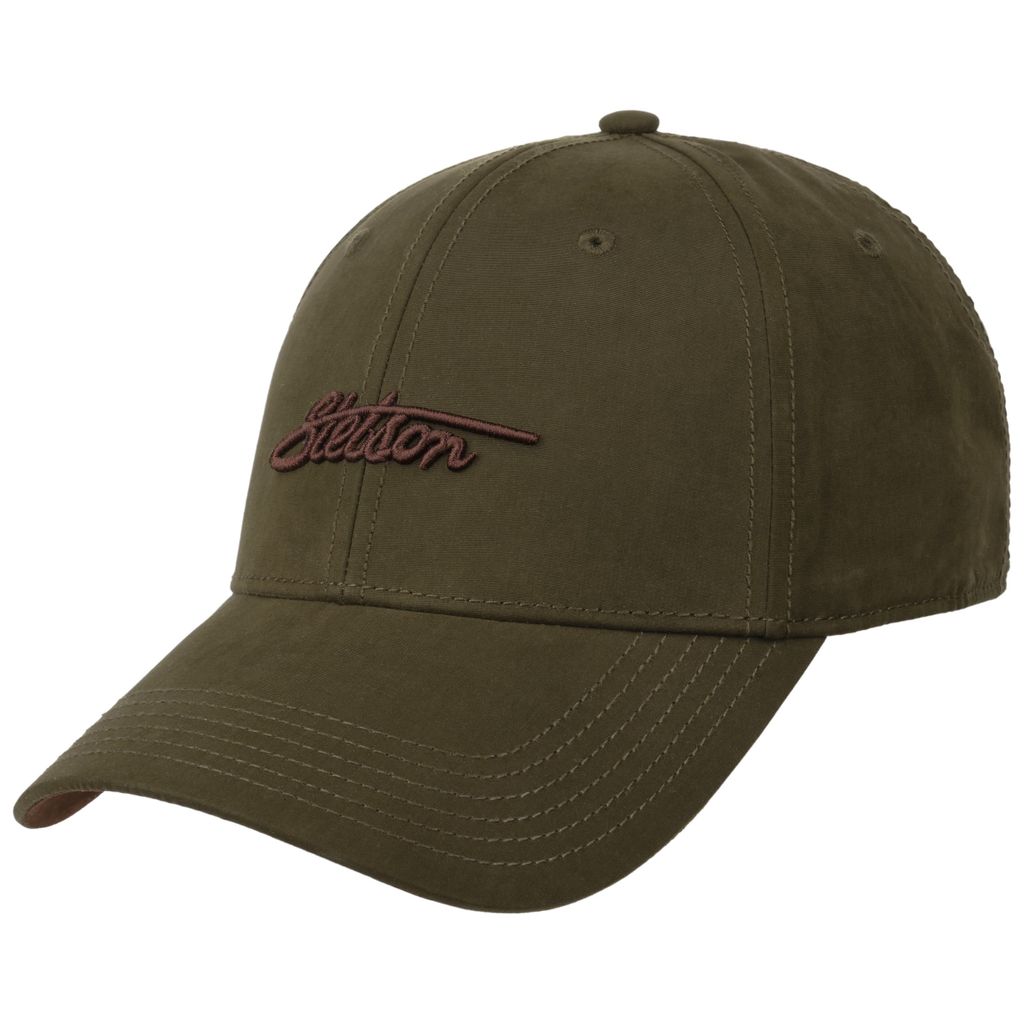 En stilren baseball keps från Stetson i vaxad bomull med vattenavvisande yta, UV-skydd och justerbar passform för bekväm användning i alla väder.