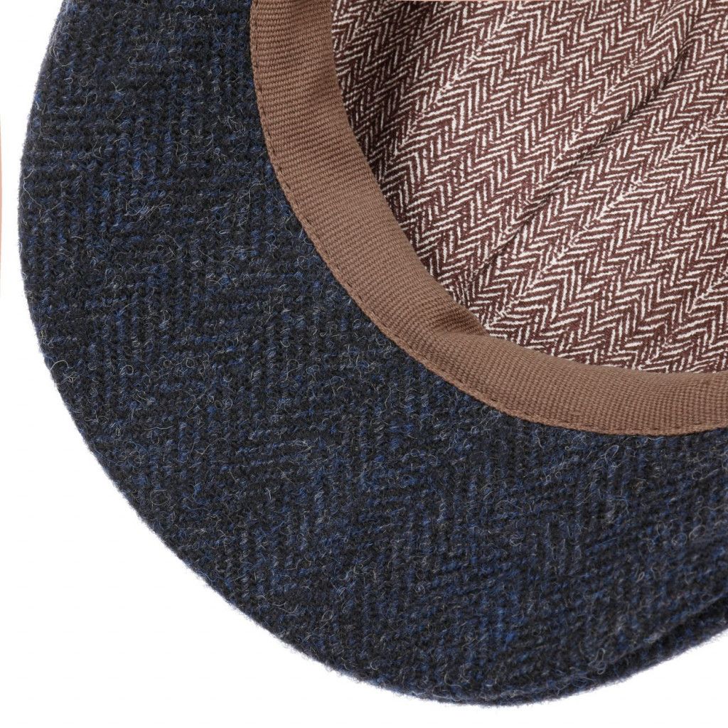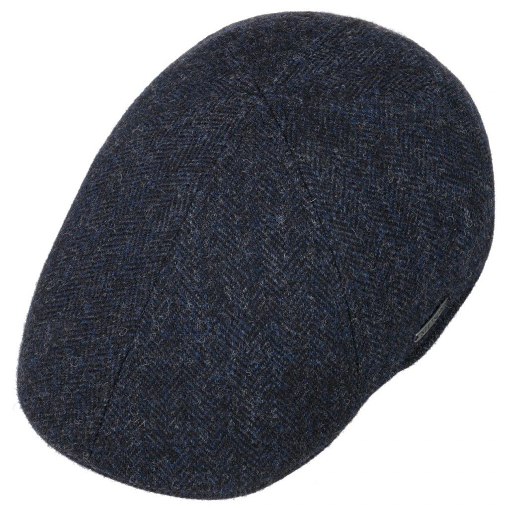 En snygg och stilren fiskbensmönstrad flat cap /gubbkeps i mörkblått och svart från Stetson. Stetson logo i metall på sidan.