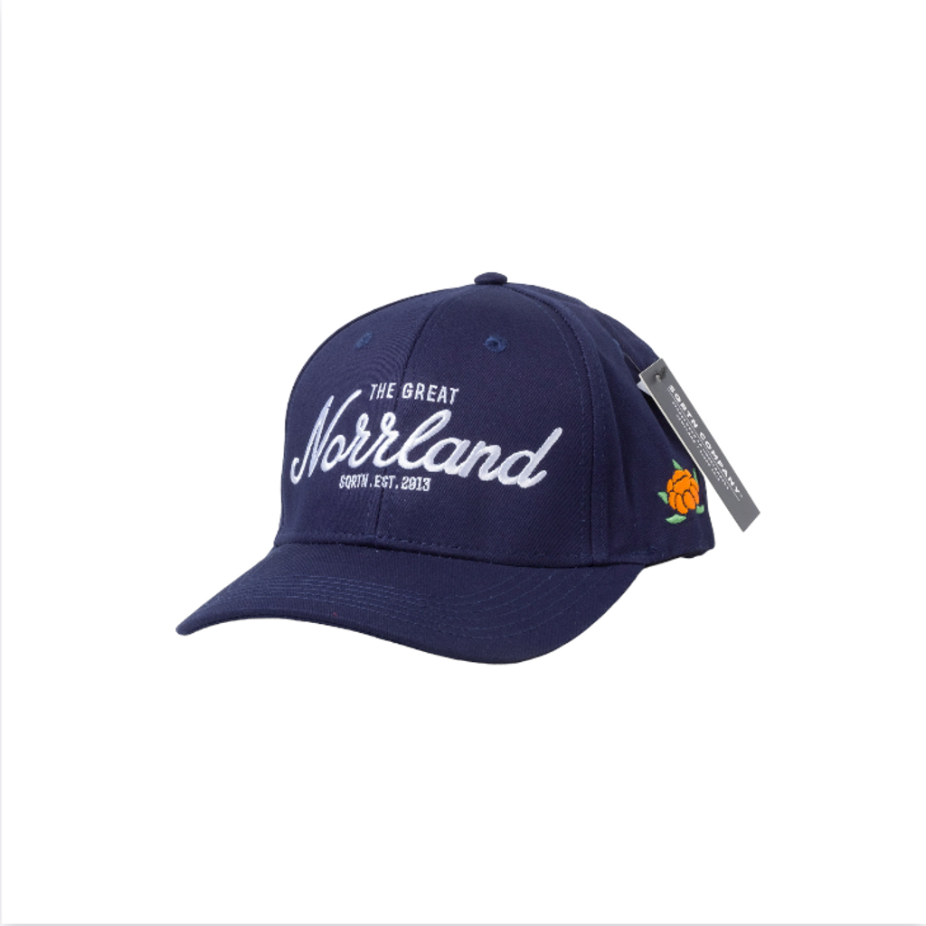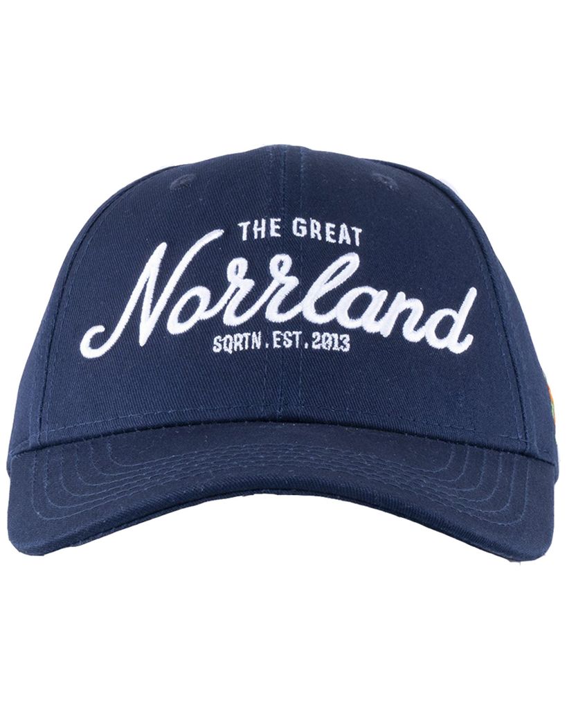 En mörkblå keps från SQRTN med brodyr " The Great Norrland" framtill.