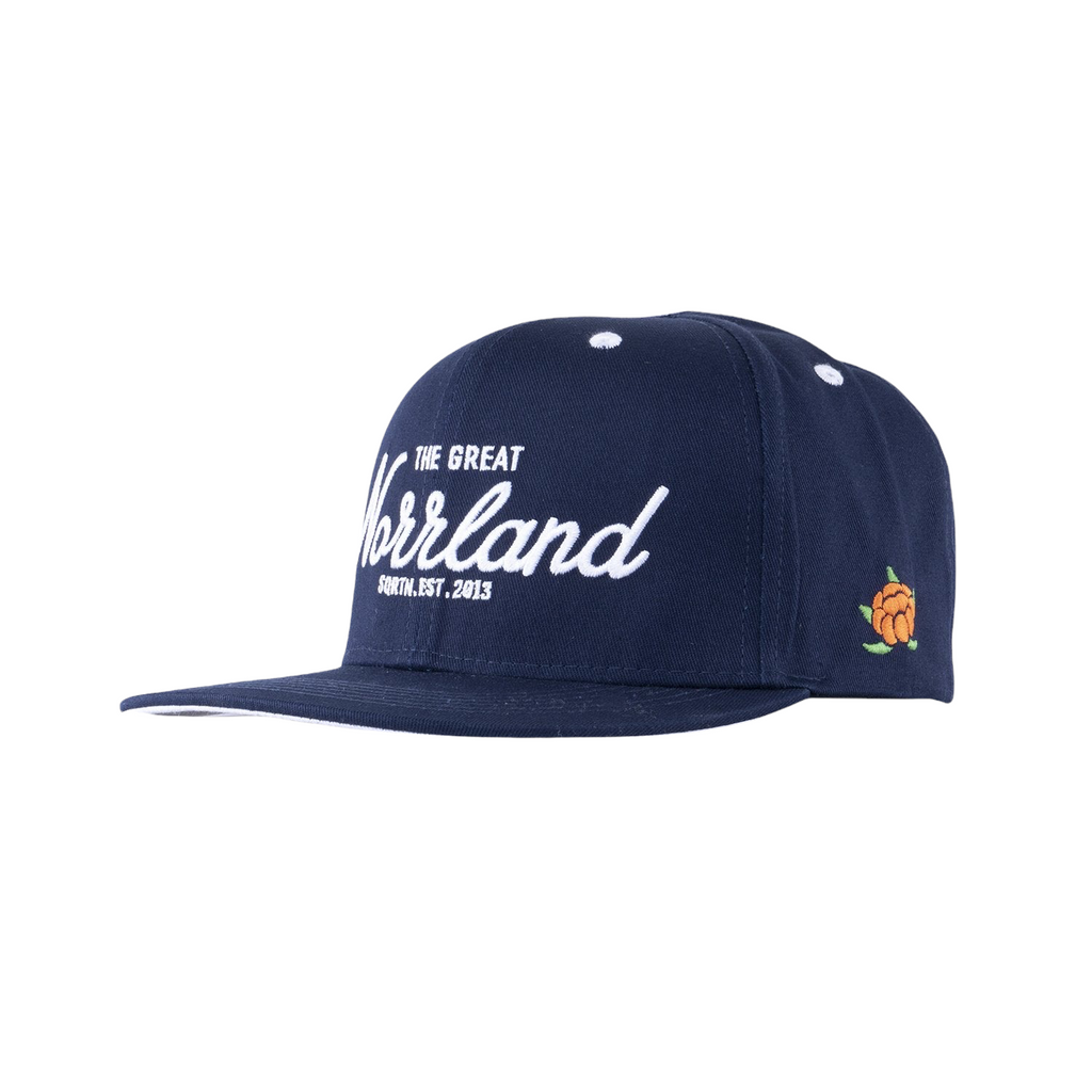 En marinblå snapback men brodyr - THE GREAT NORRLAND Reglerbart spänne baktill. Kepsen är gjord av återvunnet material.