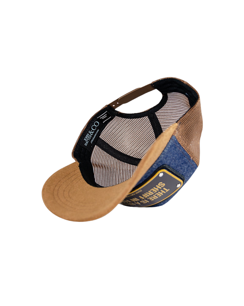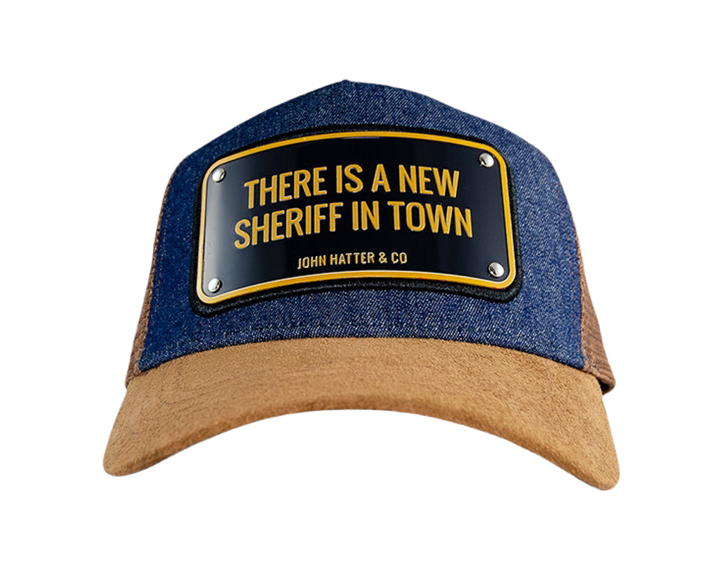 Trucker keps från John Hatter & Co i jeans och mockaimitation.