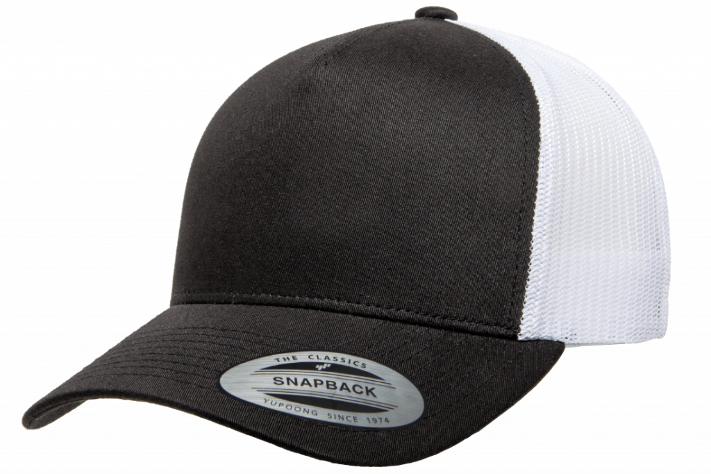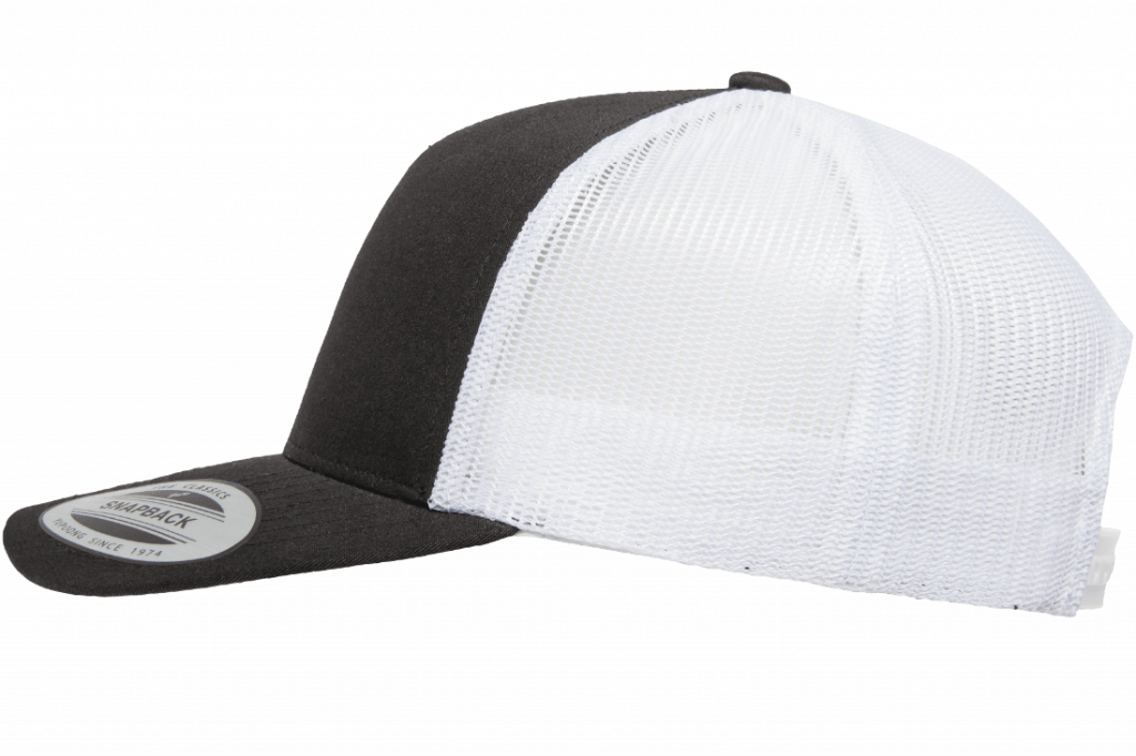 En 2-tone trucker från Yupoong i svart och vitt. Reglerbart spänne baktill.