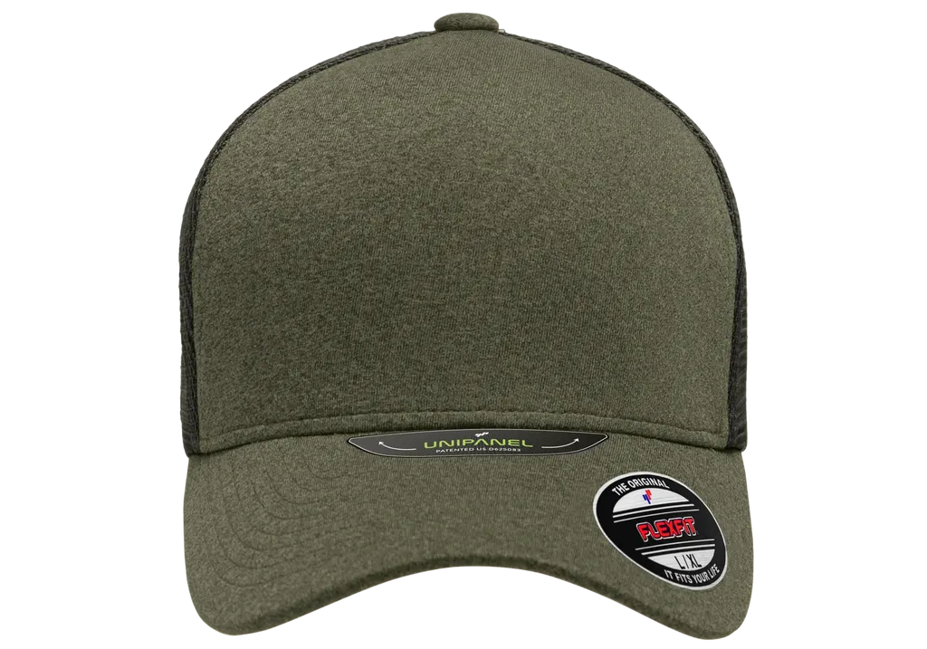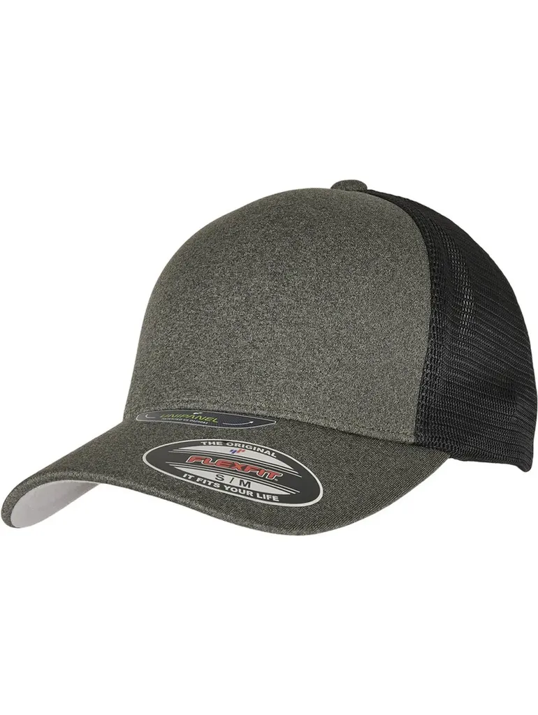 Unipanel™ Trucker Melange Olive Black Cap -5511UP- Flexfit®.