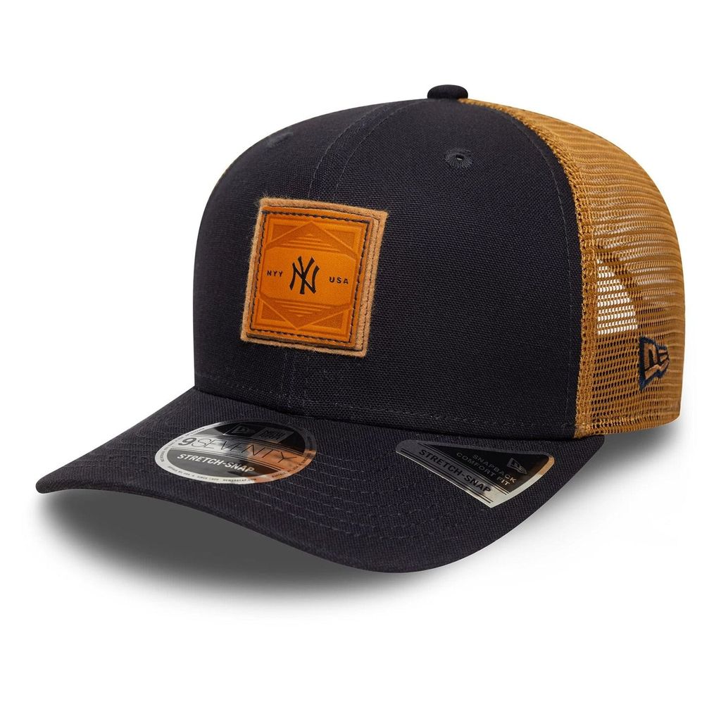 New York Yankees Debossed Logo Navy 9SEVENTY Stretch Snap Adjustable Cap- 60611622-New Era. Truckerkeps med NY logga på en skinnpatch.