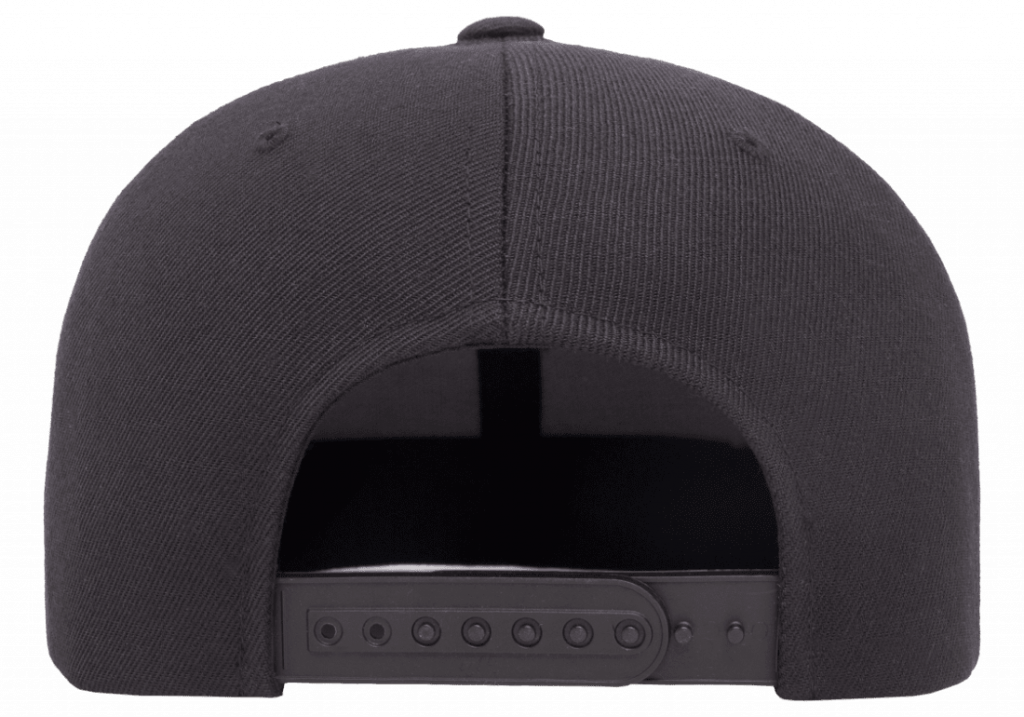 En helsvart snapback från Yupoong. Reglerbart spänne baktill.