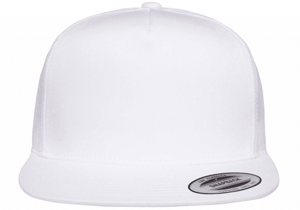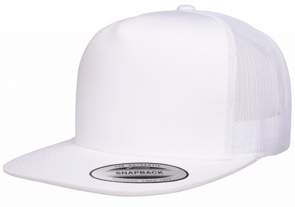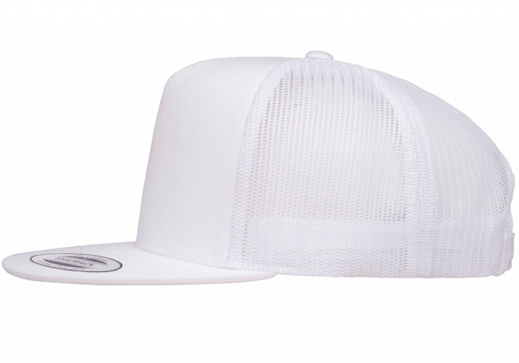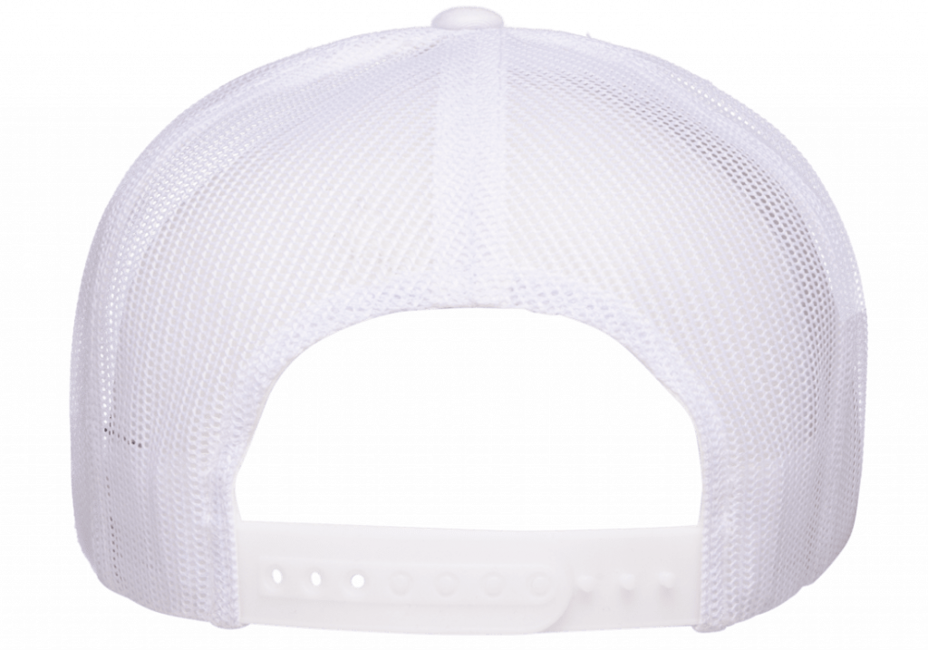Vit truckerkeps från Yupoong med reglerbart spänne baktill.