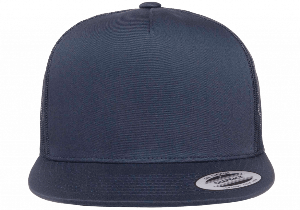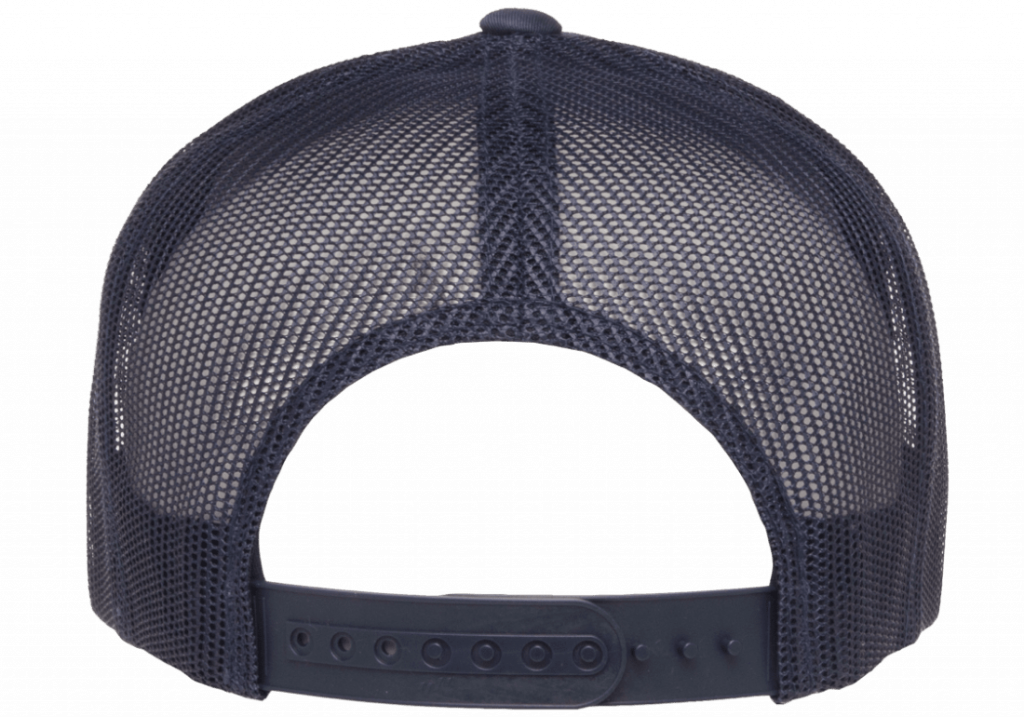 En clean trucker keps i navy utan tryck från Yupoong. Reglerbart spänne baktill.