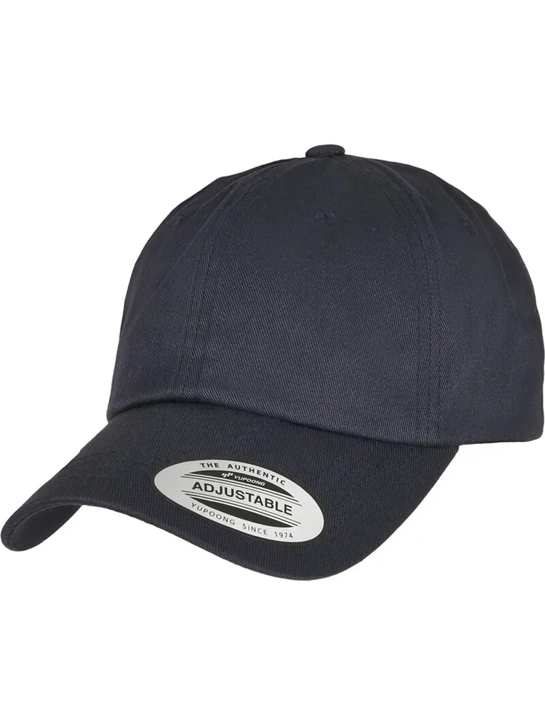 Low Profile Organic Cotton Dark Navy Cap - Yupoong. En mjuk bomullskeps med låg profil och förböjd skärm. Den klassiska mörkblå färgen gör den enkel att matcha, och det justerbara metallspännet baktill ger en bekväm passform för alla tillfällen.